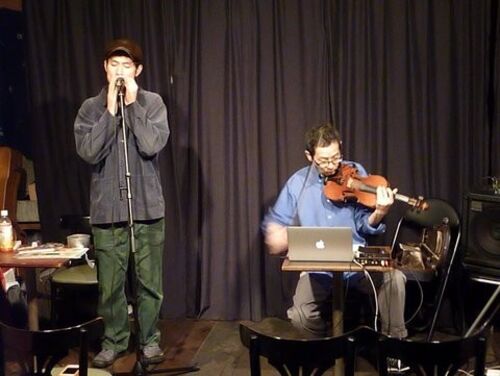 29日(金)夜、 横川理彦さんと徳久ウィリアムさんによる即興DUO投げ銭ライブを開催しました! 電子音楽、そして併せてバイオリン演奏も行う横川さんと ボイスパフォーマーの徳久さん。 かつて横川さんが音楽講座の講師を務めていたとき、徳久さんは生徒でし…